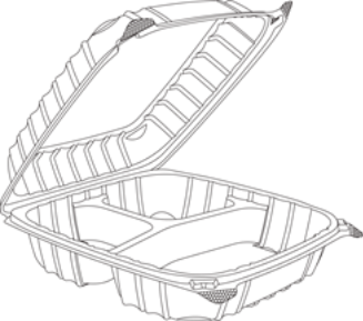 C95PST3 9 1/2″ Large 3-Compartment Clear Hinge Container / Contenedor de bisagra transparente grande de 3 compartimentos de 9 1/2″