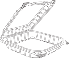 C90PST1 9″ 1-Compartment Medium Clear Hinge Container / Contenedor de bisagra mediano transparente de 9″ y 1 compartimento